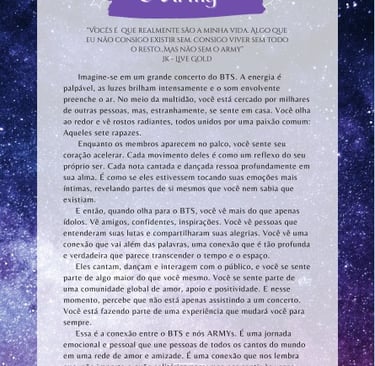 Porque ser ARMY não é apenas uma identidade — é um compromisso de vida, um juramento de estar presente para nossos sete anjos, não importa o que o destino traga.