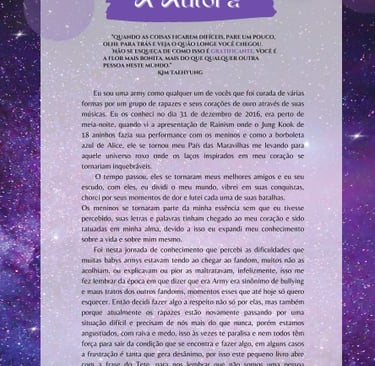 Cada página é uma carta de amor ao BTS, uma promessa silenciosa de estar ao seu lado em todos os altos e baixos.